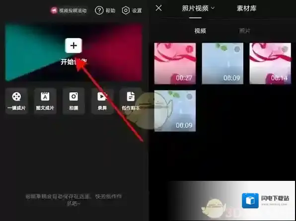 1、打开下载好的软件,选择一个自己要制作的视频,点击开始创作。