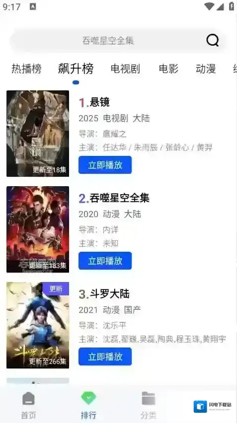 2、排行将影视根据当前热度进行了排序。