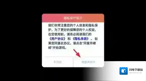 1、在本站下载游戏并打开后,点击同意并继续以进行后续操作。