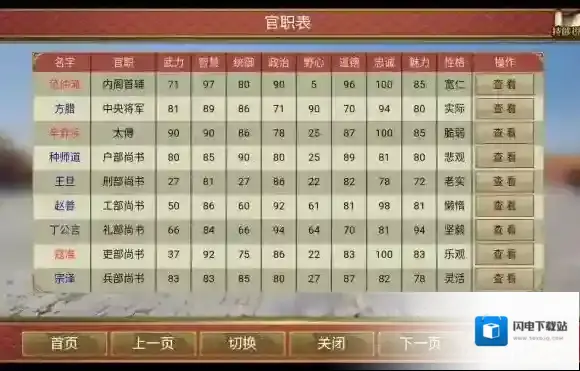 忠诚这个属性最好是要高于野心并在80以上,这样才可以减少一些忠诚低的官员搞事情。