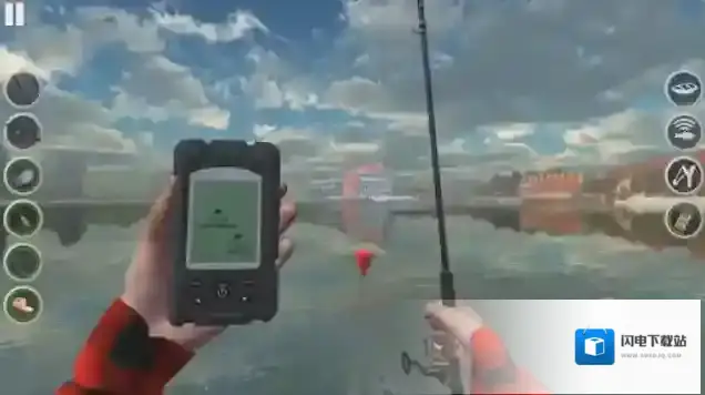 4、找好位置后,双击水面即可抛出鱼线,左上角可以显示浮漂的情况。