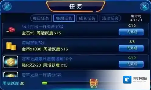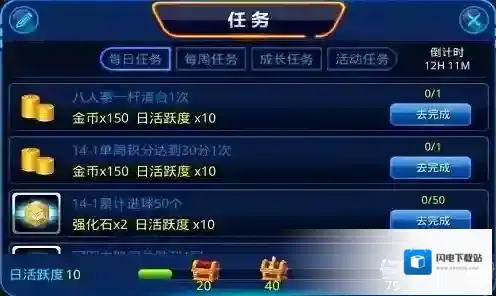 1、按时完成任务,提高活跃度,每天都有机会获得A级和S级球杆的碎片。