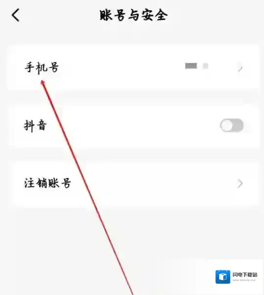 4、在账号与安全页面中,点击 “手机号” 选项进行设置即可。