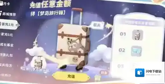 1、首充,首充任意金额即可获得载具梦岛旅行箱,帮助玩家前期跑图。