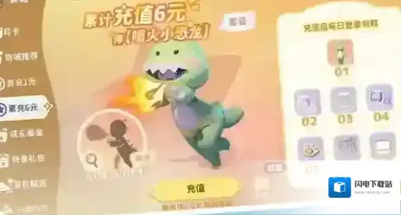 2、累计充值6元,立得喷火小恐龙套装+专属喷火动作。