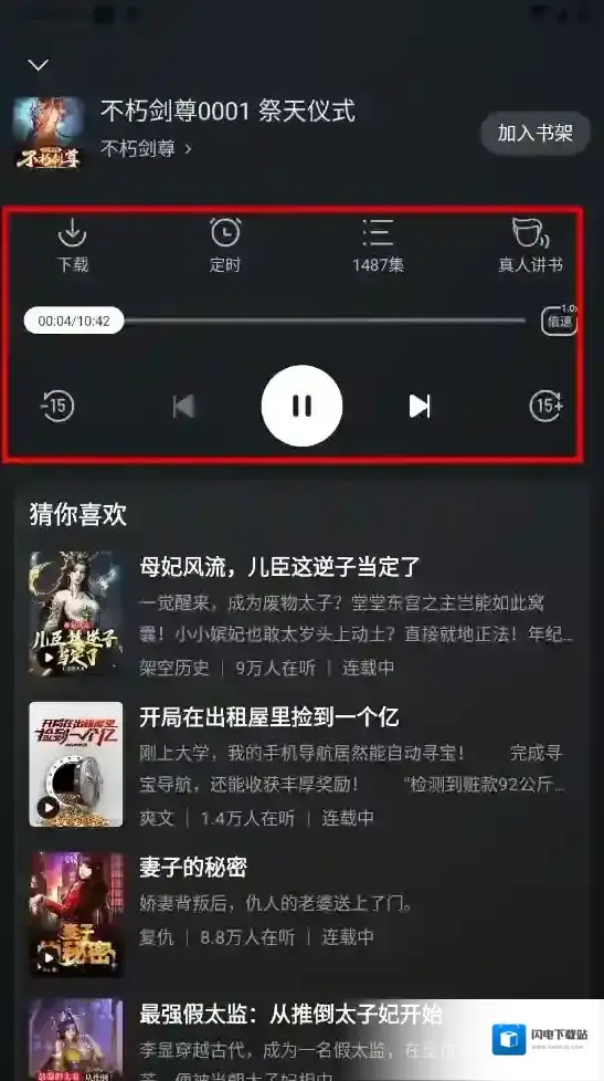 5、如图,即可开启听书体验,支持下载、定时、倍数听书哟。
