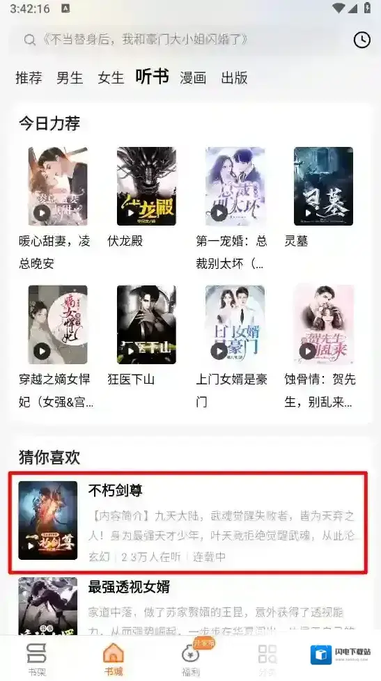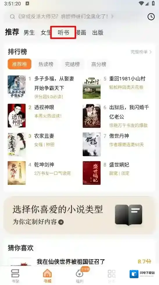 2、进入书城页面,点击”听书”,如图。