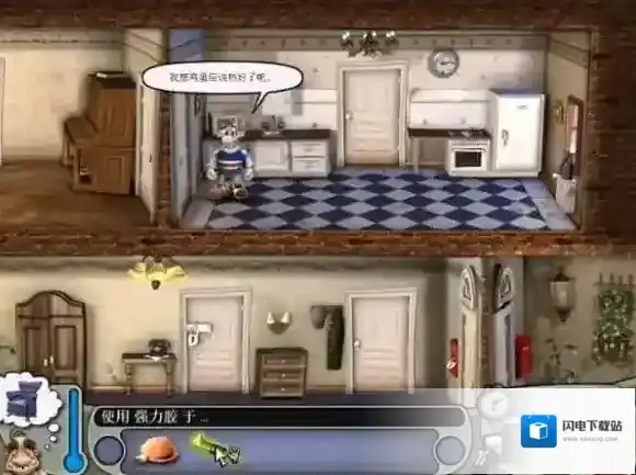 7、趁邻居进入卫生间时,使用电视天线,并用锯子破坏沙发。随后返回门厅,你将看到邻居被整蛊的场景。