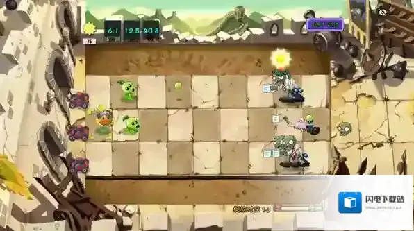 3、种下不同的植物来抵挡僵尸的进攻,击退每一波僵尸就可以获得胜利,关卡的进度条会在右下方显示。