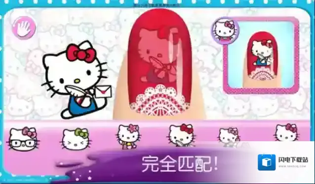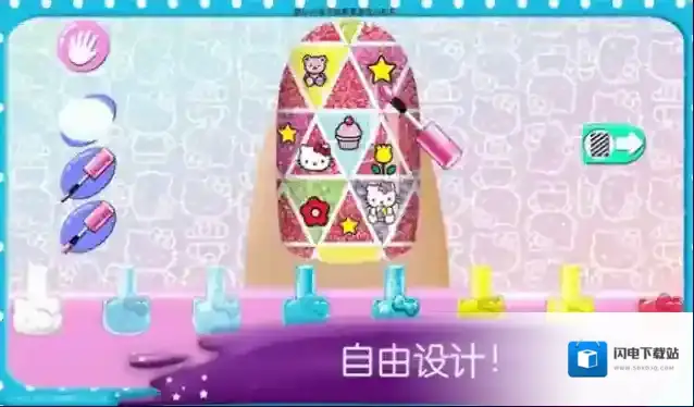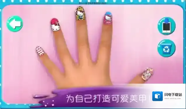 2、游戏中有着各种可爱的贴纸,它们的原型都来自凯蒂猫系列中的人物,让你可以尽情去设计出各种独一无二的美甲。