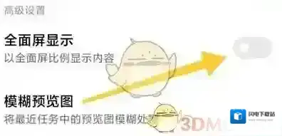4、最后去点击“全面屏显示”后面的开关即可。