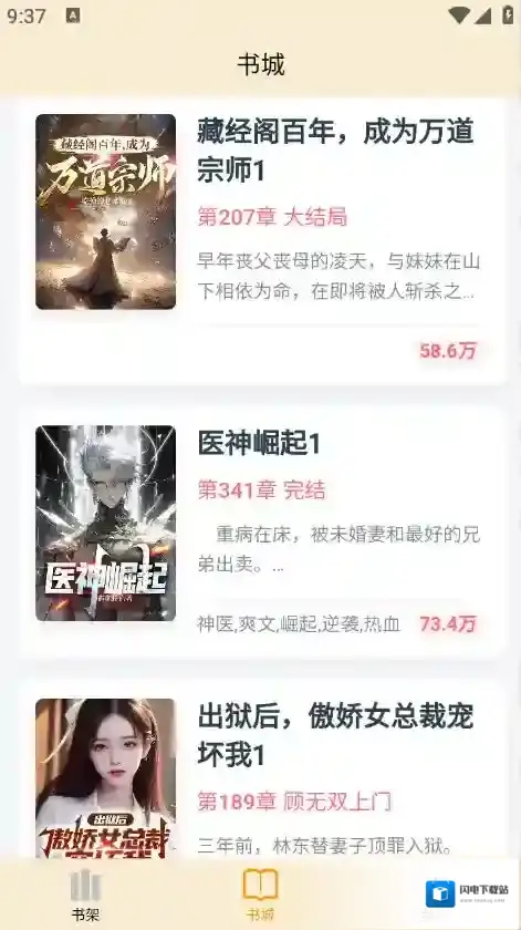 2、书城页面有很多的小说资源,各种类型都有。
