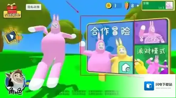 游戏支持本地或在线联机,玩家可以默契配合进行翻滚跳跃,共同跨越障碍并收集胡萝卜。