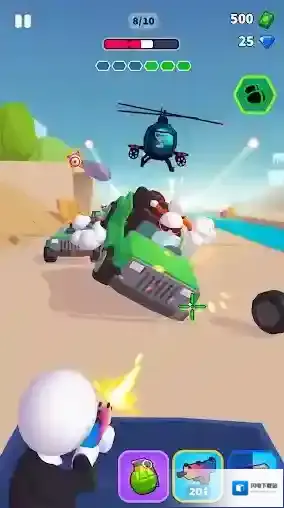 2、接着我们点击下方屏幕就可以射击了,击溃一辆汽车后,准心就会自动的移到下一量。