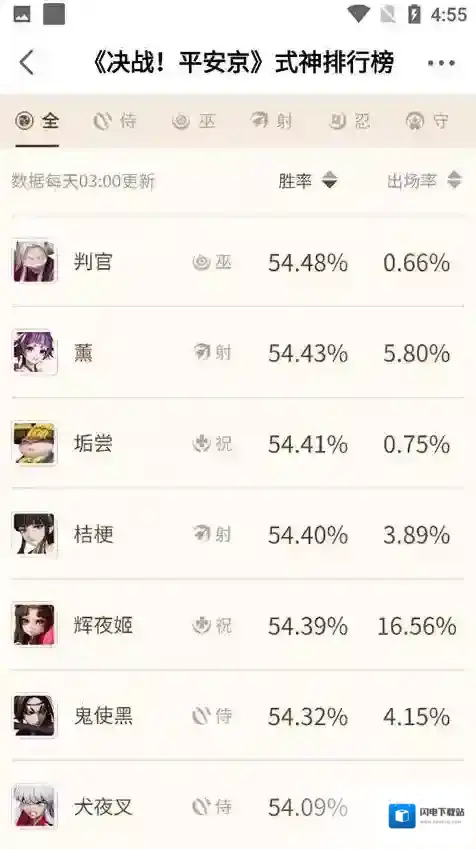 3、将看到游戏正式服中实时更新的式神排行榜信息。