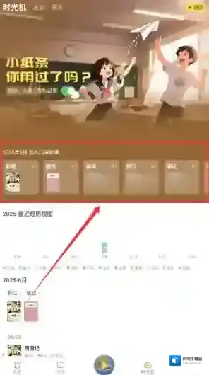 1、打开口袋故事后,在首页底部导航栏找到“时光机”图标并点击。