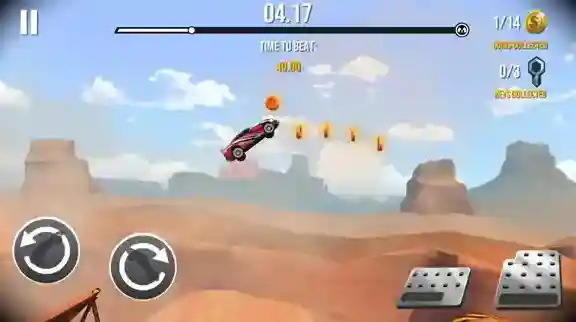 6、操控车辆不断前进来收集金币,顺利地点终点就可以通关,完成指定目标还可以三星通关。