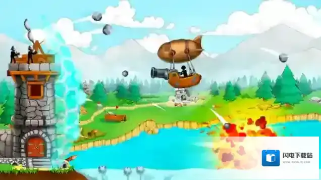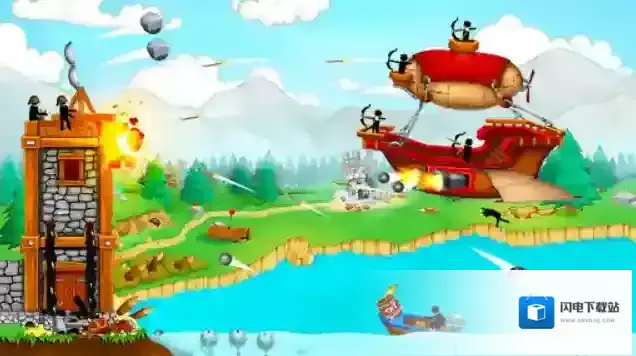弹射海盗,以火柴人为主角的休闲闯关类手游。游戏中,我们将会控制自己的火柴人士兵守卫城堡,面对不断来袭的海盗船、飞艇等敌人,通过投掷城堡上的投石器去攻击敌人,击败所有敌人即可过关获得奖励。通过不断的闯关来积累资源,解锁更多新的道具,帮助你去战胜更多不同类型的敌人!除此之外,游戏内还有各种火柴人、炸弹、技能等元素可以使用,帮助你在关卡中大杀四方,闯过更多的关卡!
