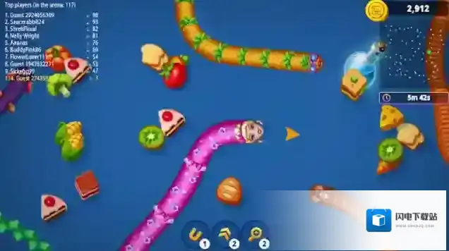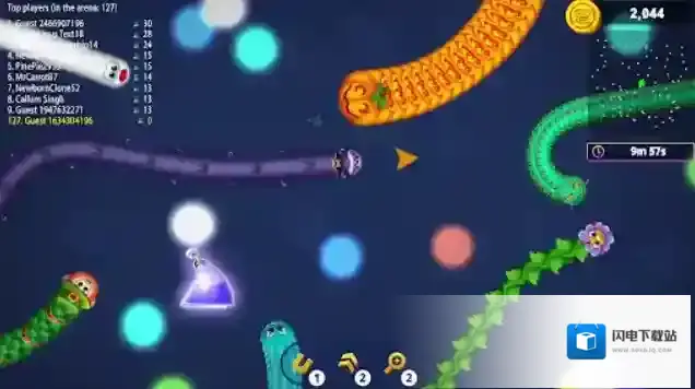 2、操控蠕虫寻找食物,靠近即可食用,增加自己的长度。