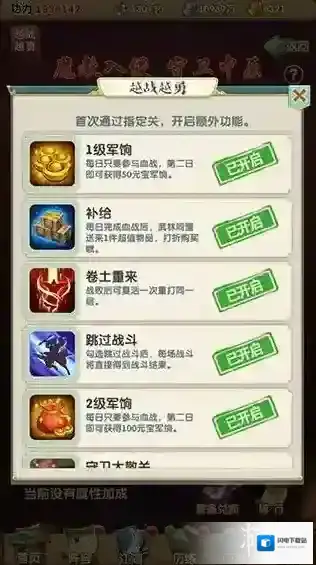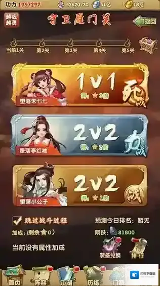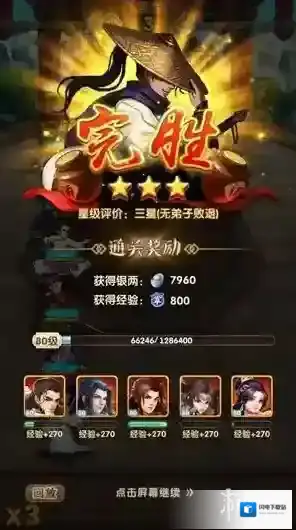 4、若某一关卡无法三星通关,切勿重复挑战,此时应去培养弟子或提升装备功力,之后再回来挑战。