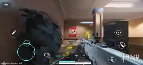 4、遵循主流FPS操作模式,屏幕滑动可调整瞄准镜朝向,长按射击键发动攻击。