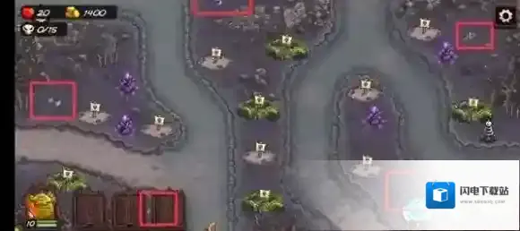 三个滑稽处有三个额外出兵口,右上角的那个会出高甲小BOSS,然后向左路袭来。