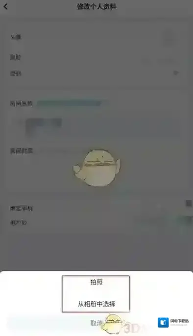 5、点击后即可弹出图片选择选择选项,用户可以通过拍照或者手机相册选择的方式选择图片作为自己的主题背景。
