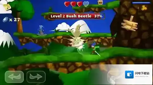 6、上方会显示人物的血条,被敌人击中或者掉落悬崖都会扣减。