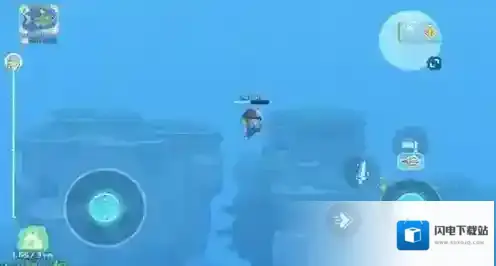 使用左侧摇杆控制角色移动,右侧按钮发射鱼叉捕鱼,注意角色氧气条,在耗尽前需返回水面。