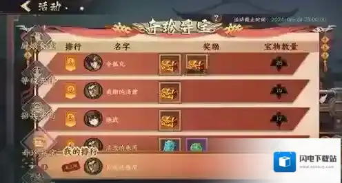 6月11日0点,将根据宝物数量结算排行奖励,玩家可赢取橙将自选箱、补天石等排行奖励。