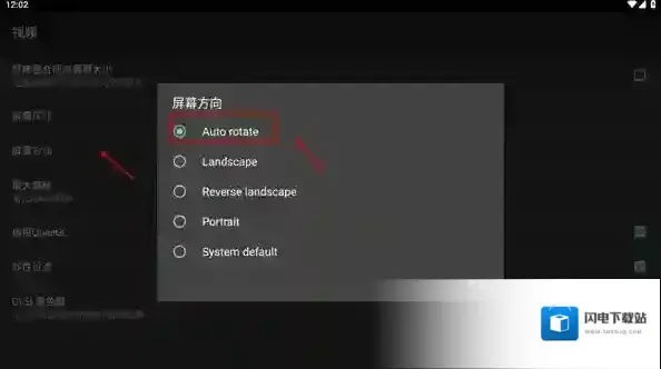 3、然后找到屏幕方向,选择Auto rotate即可在游戏启动后自动转屏为横屏。