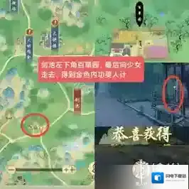 3、剑池左下角百草园,最后走向少女,可获得金色内功美人计。