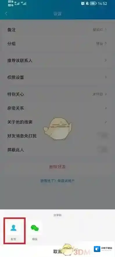 《QQ》推荐好友给别人方法1、在手机QQ中,点击好友列表,在列表中找到好友,点击好友进入到好友信息界面; 2、在信息界面点击右上角的设置; 3、接着就可以看到推荐该联系人; 4、点击打开之后,会在屏幕的下方出现选择,用户可以选择其中的好友,选择别的好友,就可以进行推荐。 本文...2025-07-28